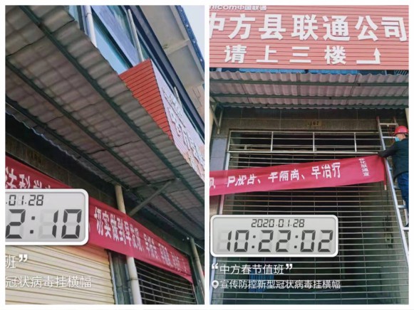 疫情就是命令,防控就是責任。自疫情發生以來,全國各地各類硬核宣傳橫幅遍布大街小巷,為進一步加強宣傳,聯通懷化分公司組織項目部班組成員落實宣傳橫幅的懸掛,堅決倡導“依法科學防范新型肺炎,切實做到早發現、早報告、早隔離、早治療”。